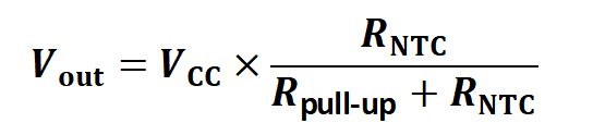 Vout = voltage across NTC (or across the fixed resistor, depending on configuration).